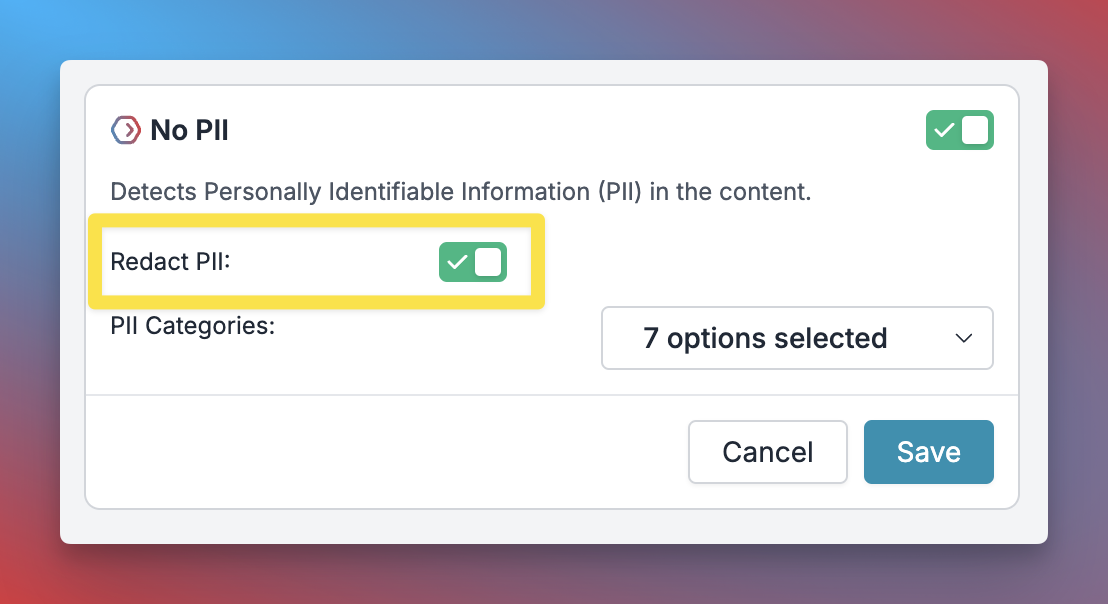 - Search for “Detect PII” under PRO guardrails