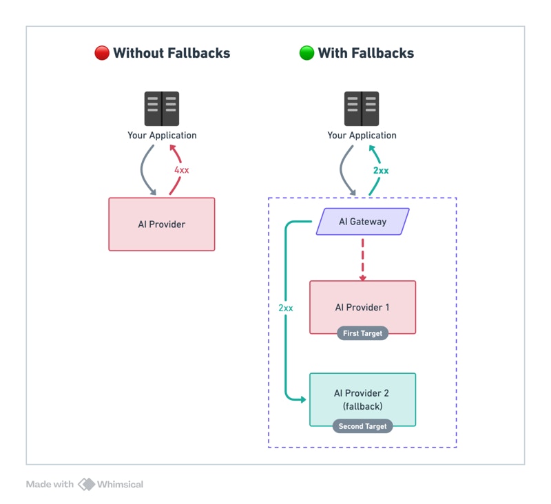 2. Keep an eye on your usage with each LLM. Depending on your fallback list, a single request could result in multiple LLM invocations.