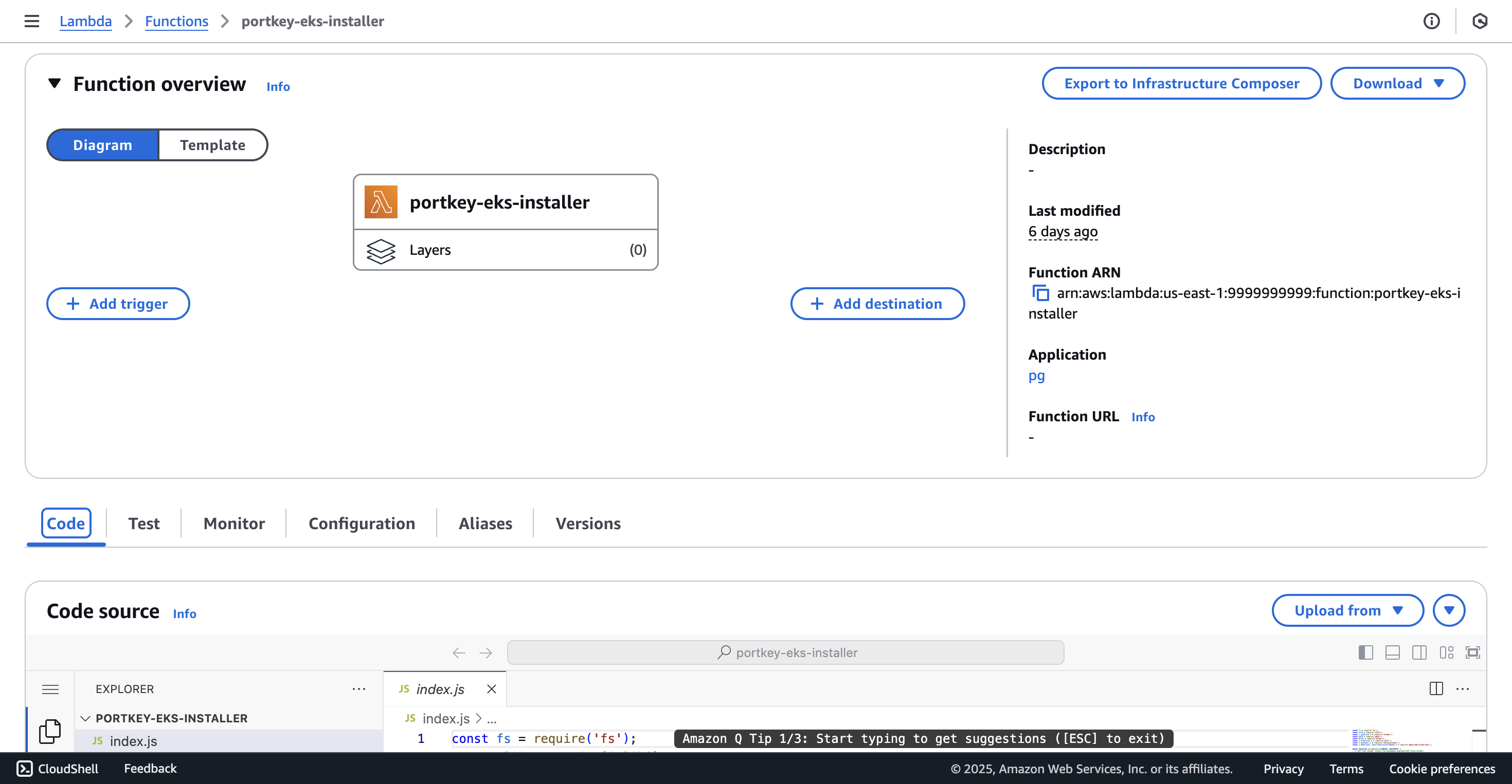- Allows for changes to the values file or helm chart deployment by updating and re-running the same Lambda function in your AWS account